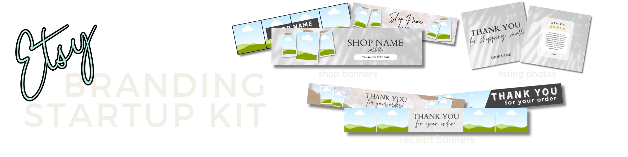 This startup kit will help you launch your shop or rebrand your shop with a cohesive and professional look! Simply edit the templates in Canva for your store, upload to your Etsy store, and voila!